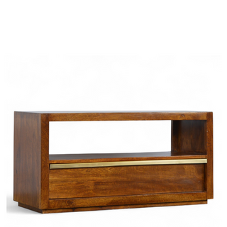 Chestnut Solid Wood Media Unit with Gold Bar Detail