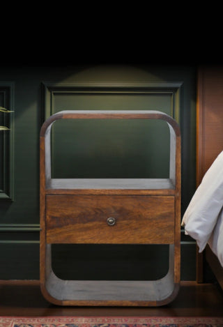 Chestnut Curved Edge Nightstand | Solid Mango Wood