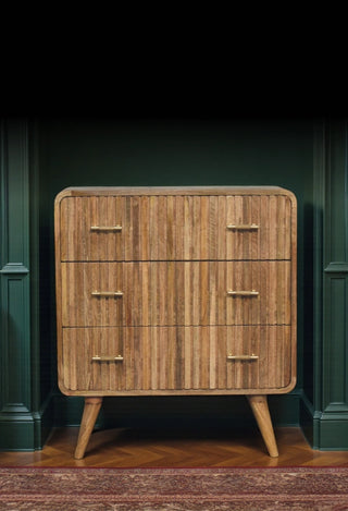 Mid-Century Modern Solid Wood Ridged 4-Drawer Dresser