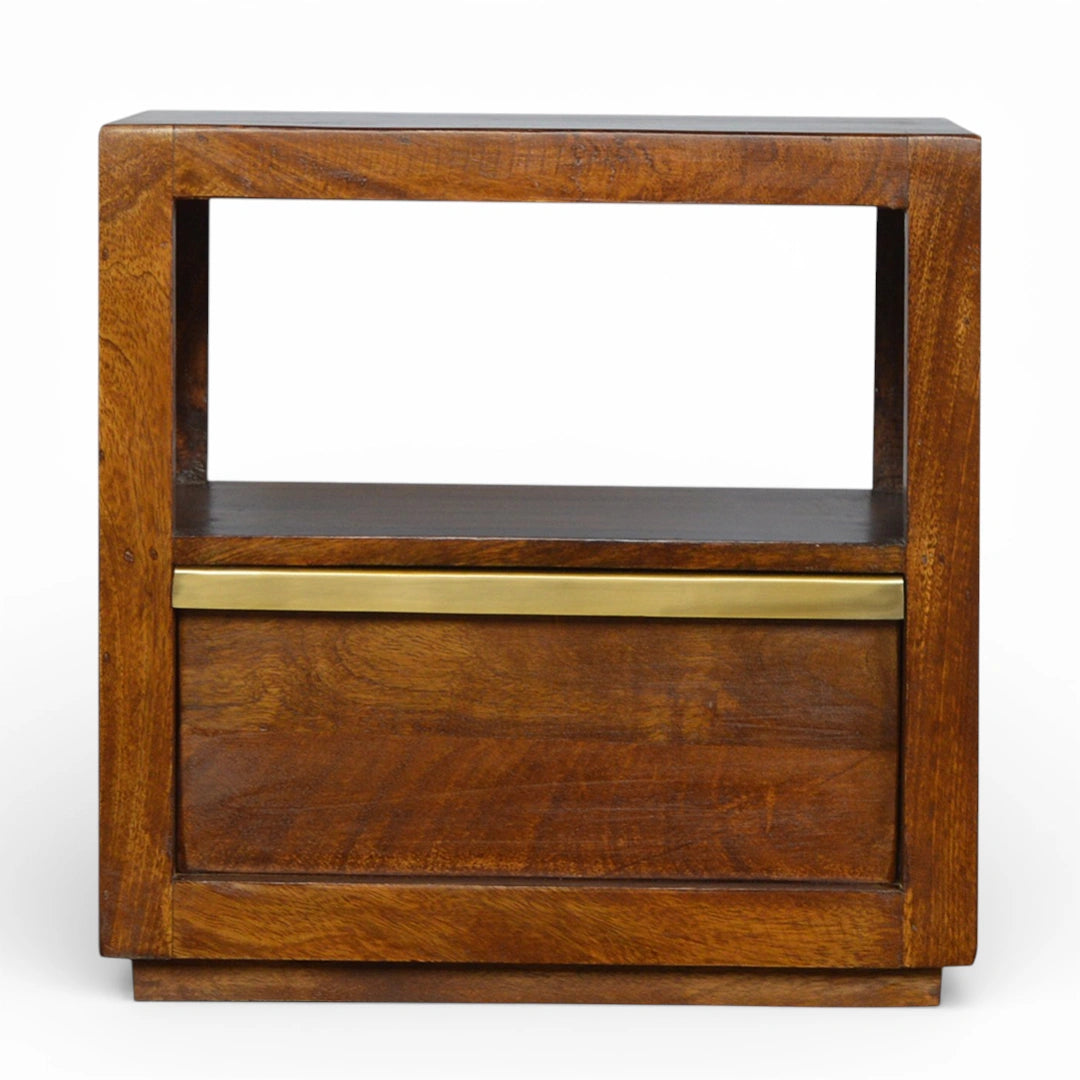Gold Bar Bedside Table with Open Shelf | Chestnut Wood