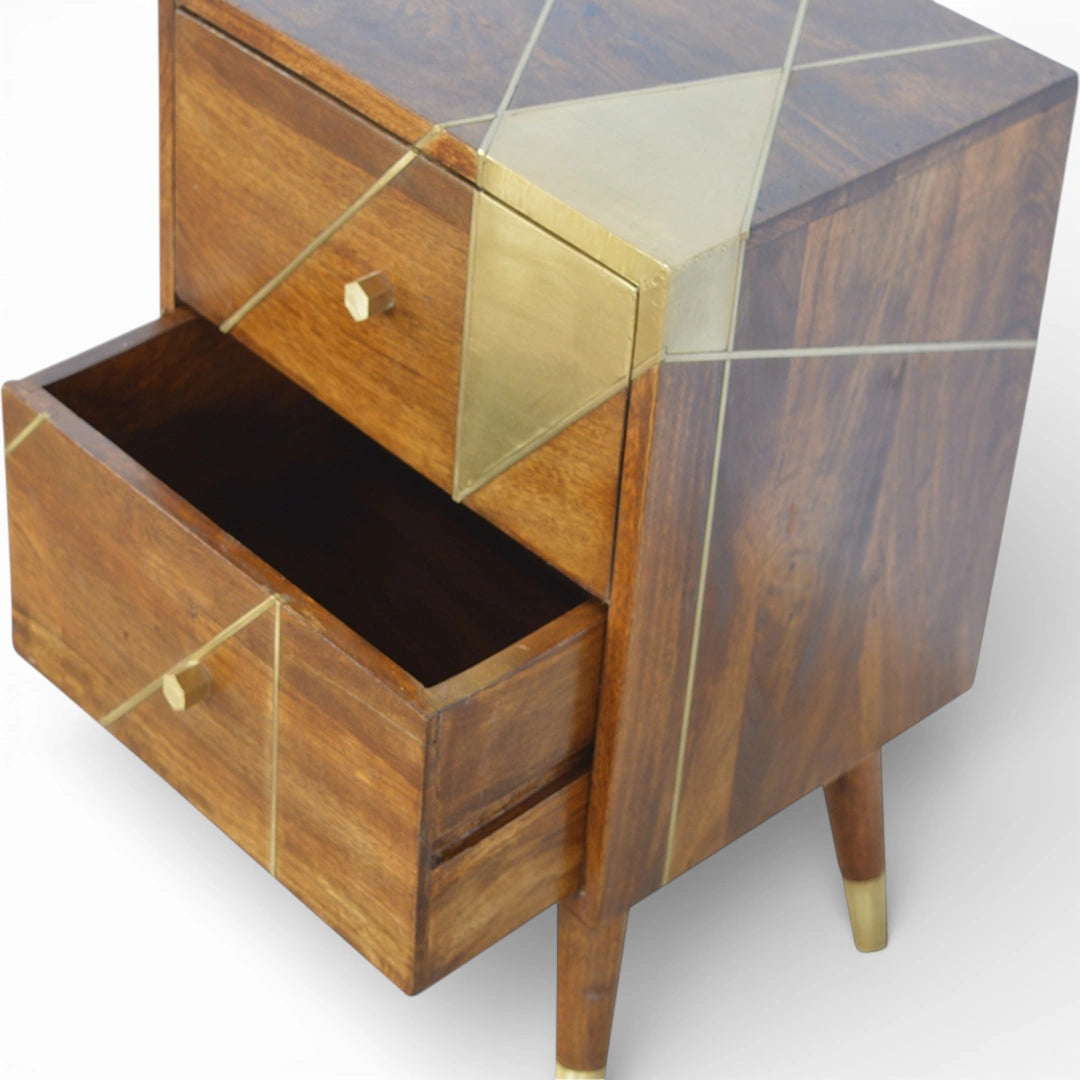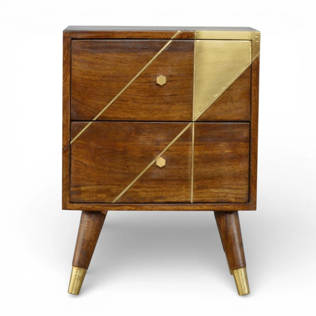 Gold Geometric Bedside Table | Chestnut Mango Wood