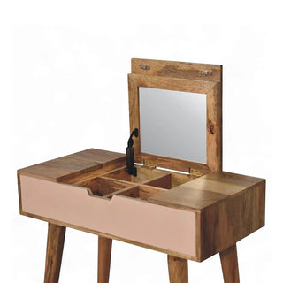 Mini Blush Pink Dressing Table with Foldable Mirror | Solid Wood