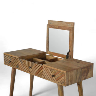 Line Carving Solid Wood Dressing Table with Foldable Mirror