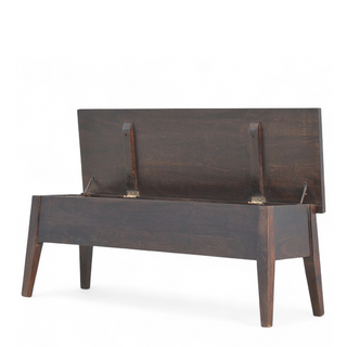 Mid-Century Modern Walnut Solid Wood Storage Bench