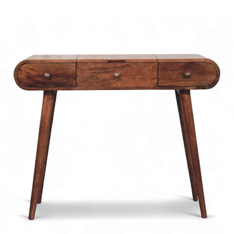 Honey Caramel Round Dressing Table | Solid Mango Wood