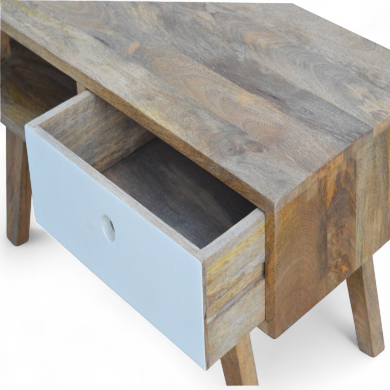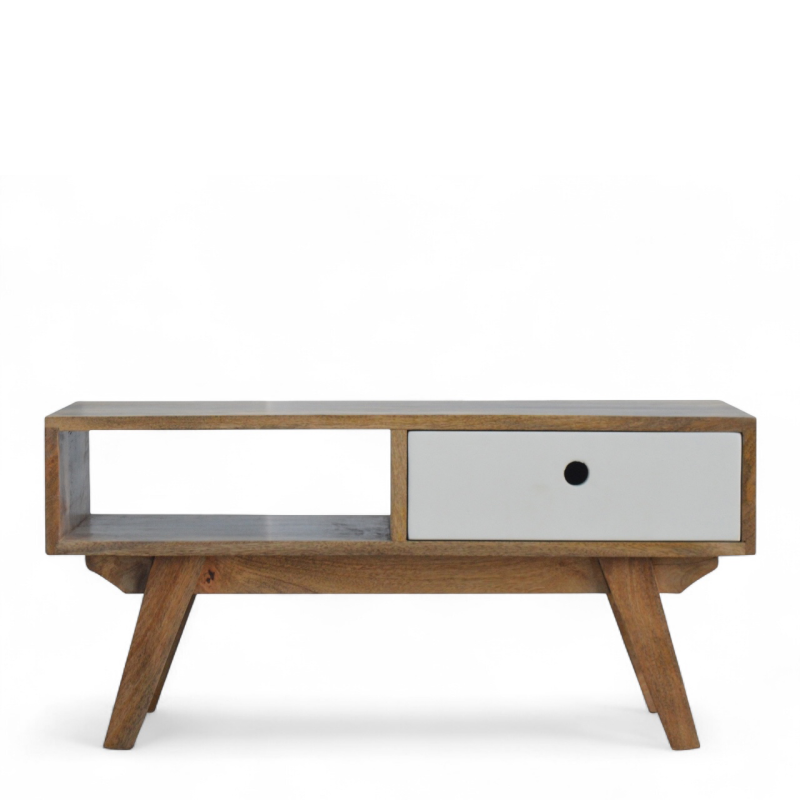 Bring artisan character to your living room with this two-tone hand painted media unit. Crafted from durable solid mango wood, it features a striking contrast of natural and painted finishes that showcase expert craftsmanship.