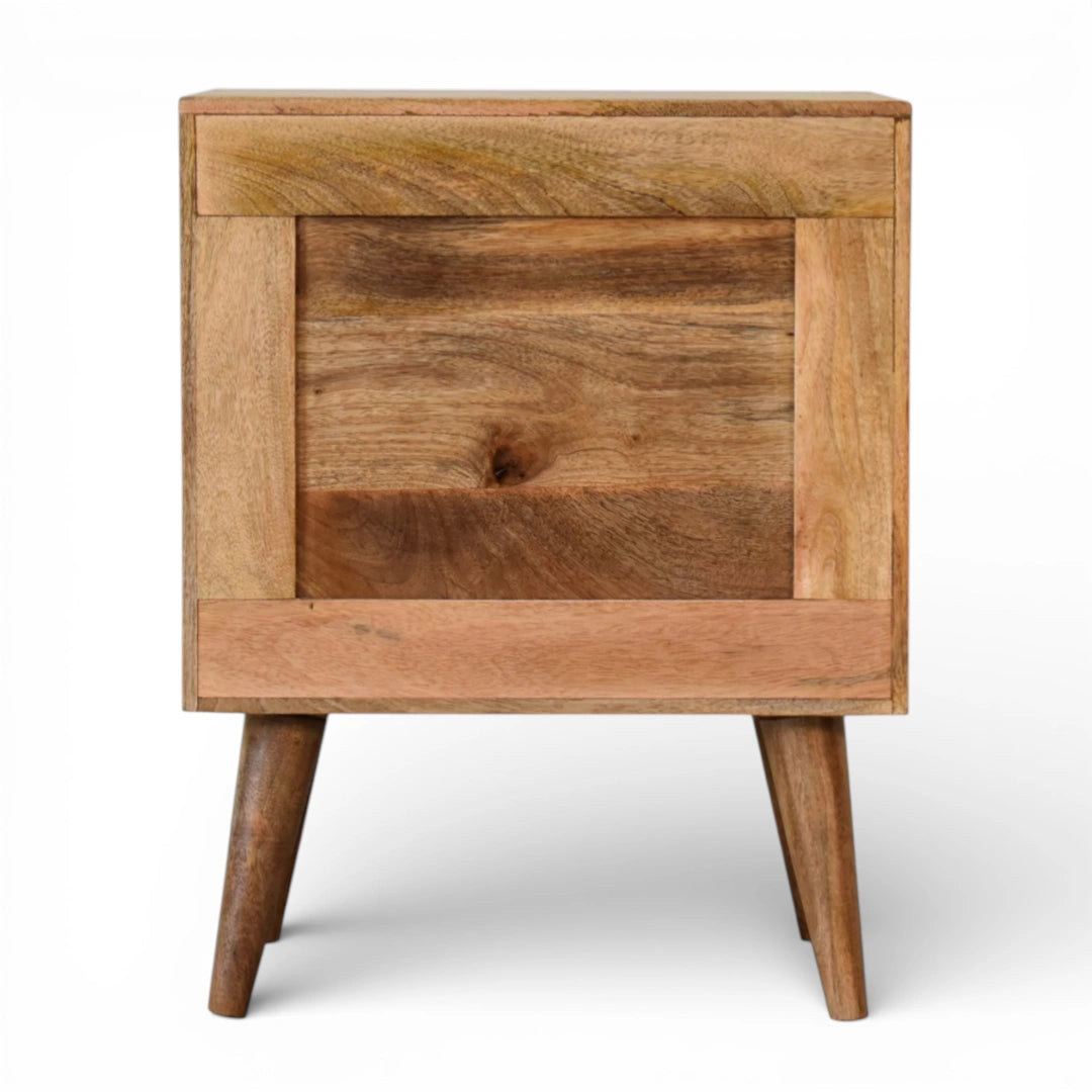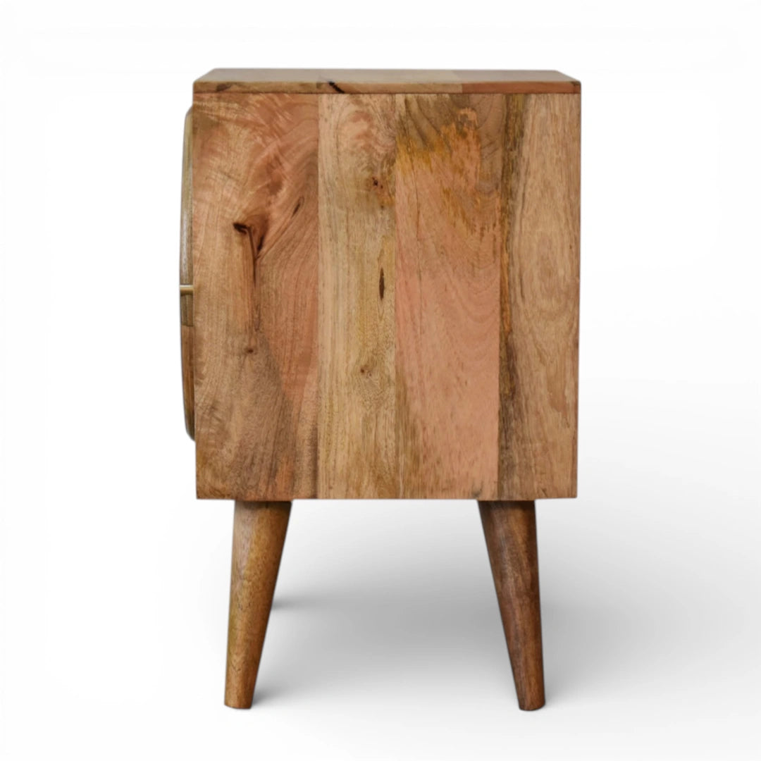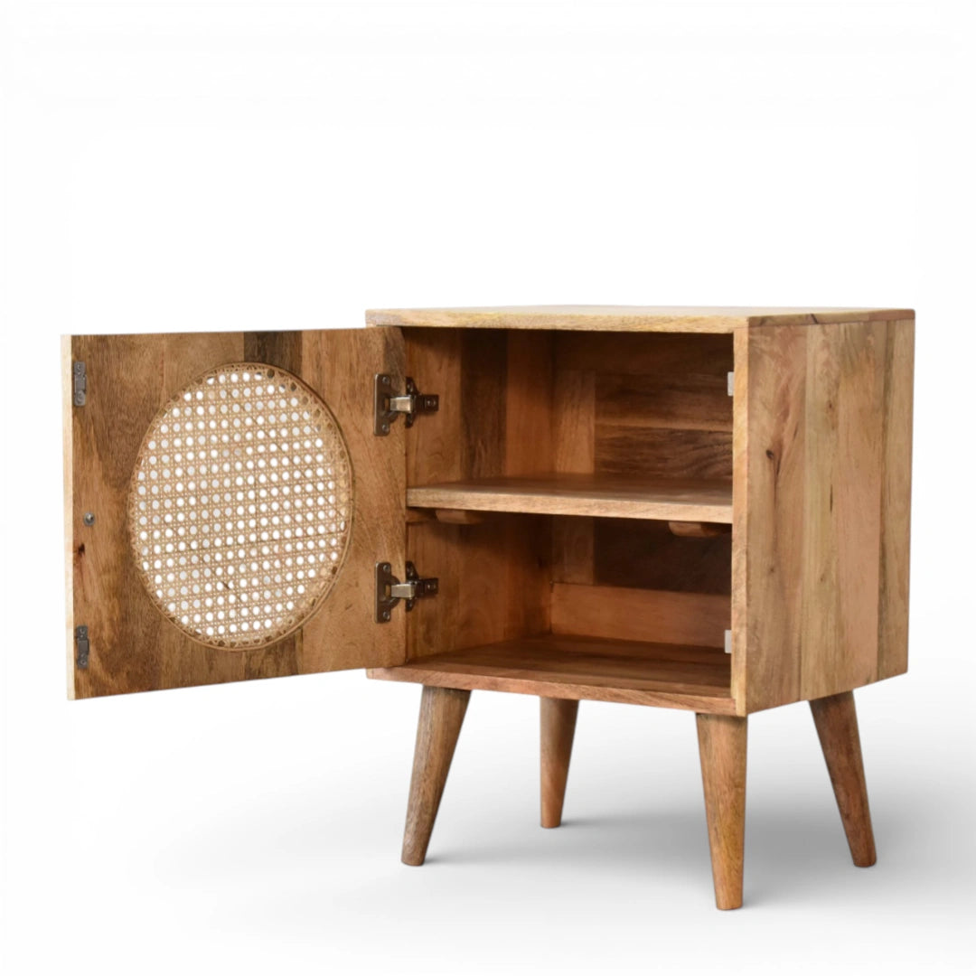 Round Rattan Door Bedside Table | Solid Mango Wood