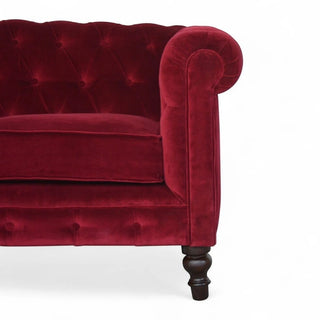 Wine Red Velvet Chesterfield Sofa | Handcrafted 2-Seater