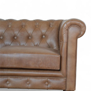 Brown Leather Chesterfield Sofa | 2-Seater | Handcrafted Design