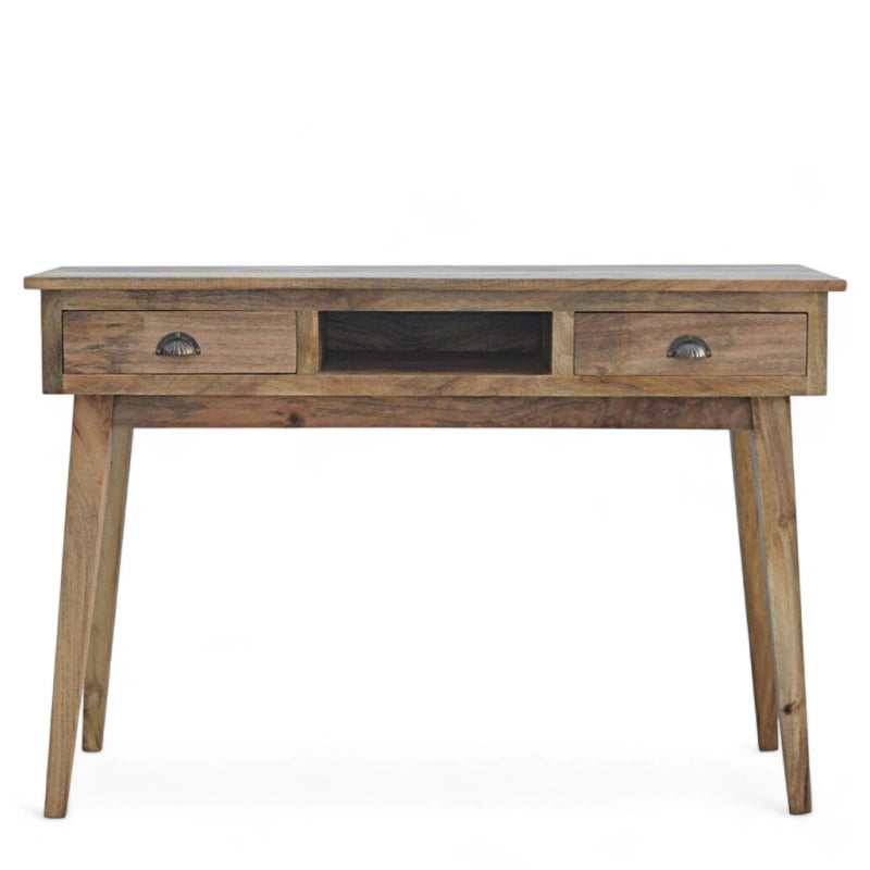 Mid-Century Modern Solid Wood Writing Desk with 2 Drawers