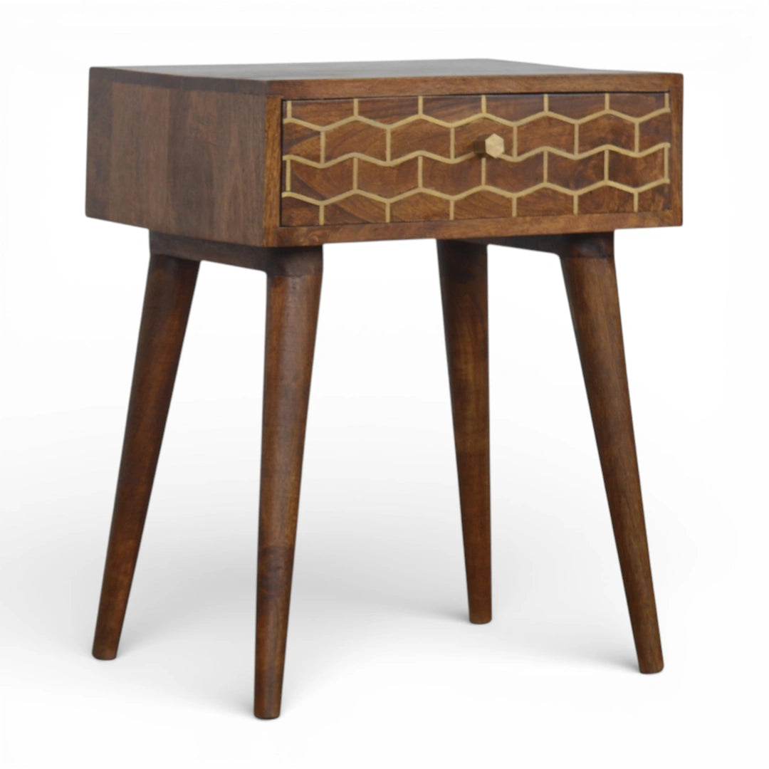 Gold Pattern Bedside Table | Chestnut Mango Wood