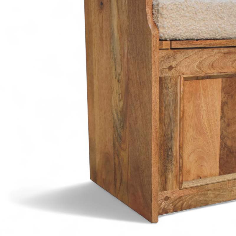 Soft, stylish, and thoughtfully designed — this cream bouclé storage bench brings warmth and refined texture to any modern or minimalist home. Handcrafted from solid mango wood and upholstered in plush cream bouclé fabric, it’s both a practical seating solution and an elegant accent piece for your entryway, bedroom, or living space.