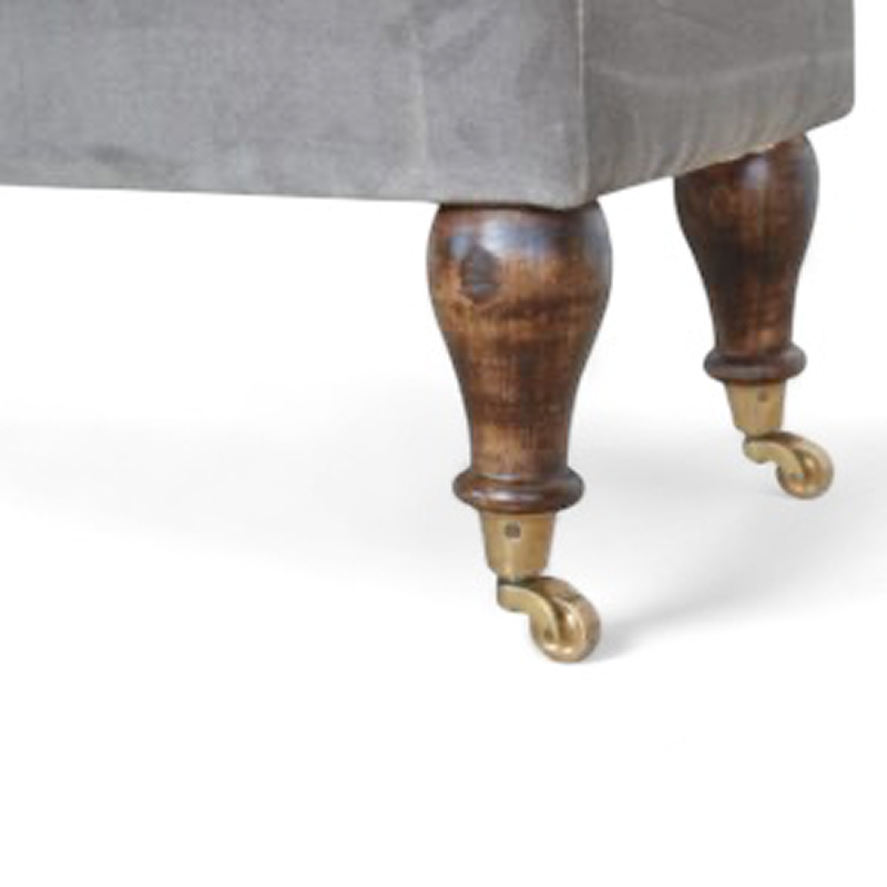 Resting on sturdy wooden legs fitted with castor feet, this bench is easy to move and versatile in use. Place it at the foot of your bed, in a hallway, or as extra seating in the living room. Blending sophistication with practicality, this velvet upholstered bench is both stylish and functional.