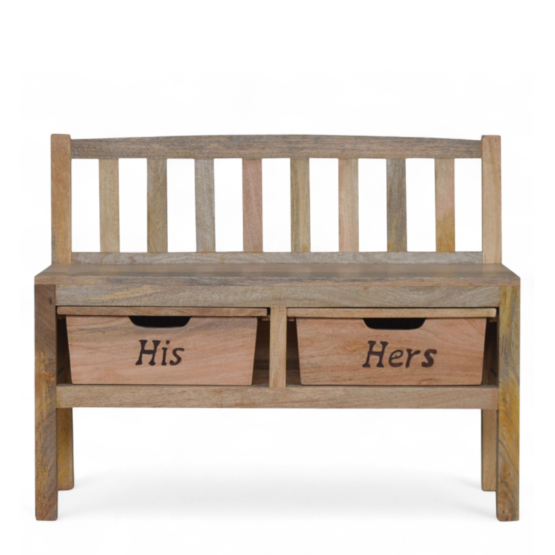 Bring artistry and function into your home with the His & Hers Carved Storage Bench. Handcrafted from solid mango wood, this elegant piece features intricate carved detailing that makes it stand out as more than just furniture—it’s a statement. The natural finish highlights the beauty of the grain, while the robust build ensures durability for everyday use.
