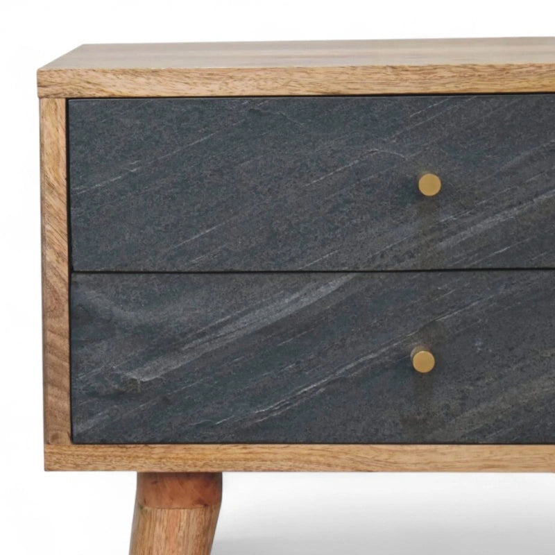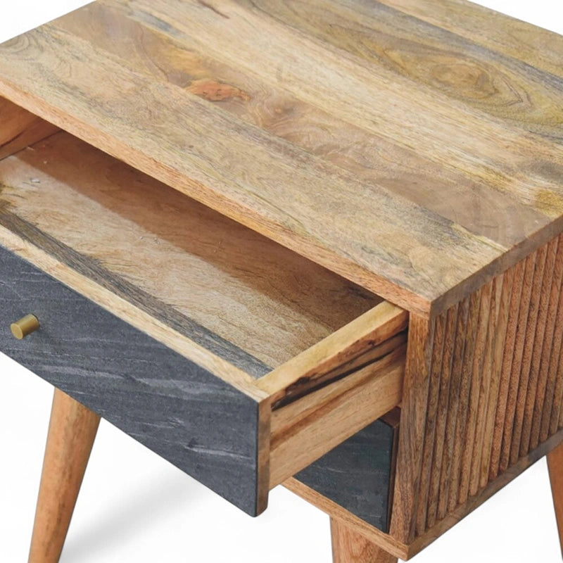 Stylish and compact, this mid-century modern nightstand is crafted from solid chestnut wood and designed with clean lines for a timeless look. The Slade bedside combines durability with practicality, offering a versatile piece for bedrooms and small spaces.