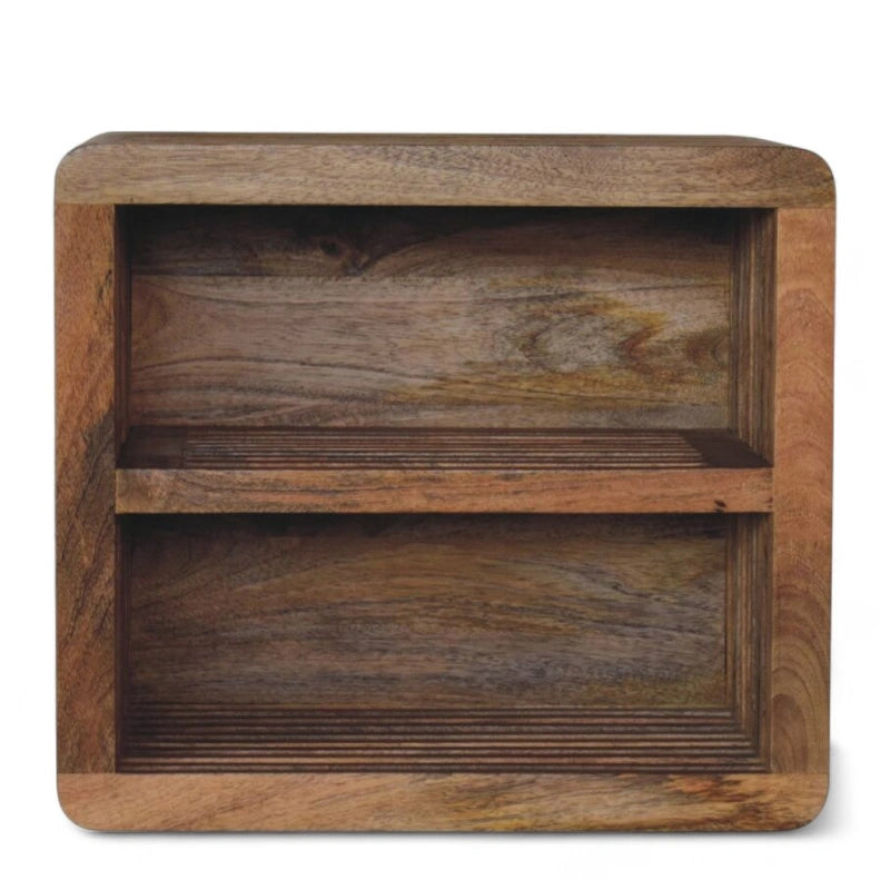 Crafted from solid mango wood with a smooth chestnut finish, this floating bedside table includes a single drawer and an open shelf for books, essentials, or nighttime accessories. The wall-mounted design creates a modern floating effect, ideal for smaller rooms or minimalist interiors. Whether called a nightstand, bedside table, or bedside cabinet, it blends style with function effortlessly.