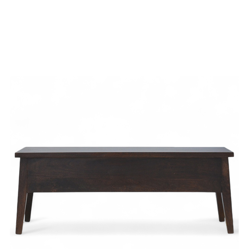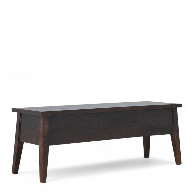 Stylish and functional, this walnut storage bench offers the perfect balance of design and practicality. Handcrafted from solid mango wood with a deep walnut finish, it brings timeless mid-century modern charm to your entryway, hallway, or bedroom. The clean lines and sturdy craftsmanship make it a versatile piece that works in any interior.