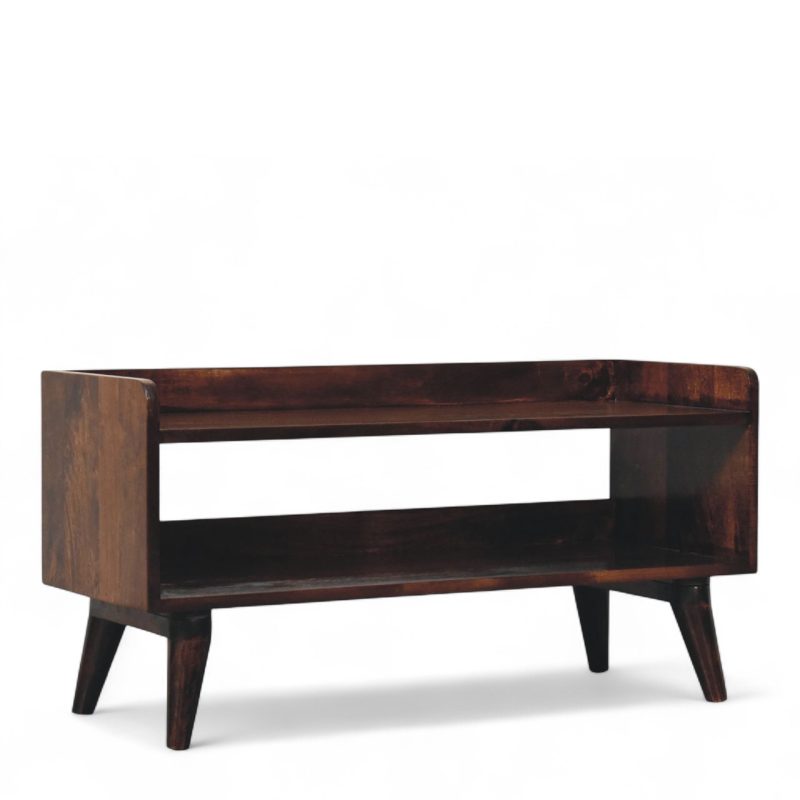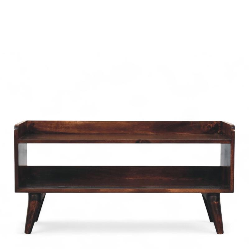 Sleek, minimal, and crafted to last — this Nordic-style walnut storage bench embodies Scandinavian simplicity with a warm, modern touch. Built from solid mango wood and finished in a rich California walnut stain, it offers a natural grain that enhances the clean silhouette and mid-century inspired lines.