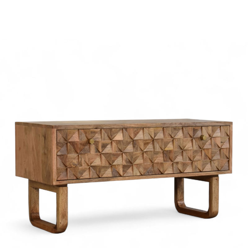 Elegant and full of artisanal charm, this pineapple-carved solid wood storage bench adds warmth and texture to any entryway, bedroom, or living space. Expertly handcrafted from solid mango wood, it features a U-shaped frame and a hand-carved pineapple motif that celebrates traditional craftsmanship with a contemporary edge.