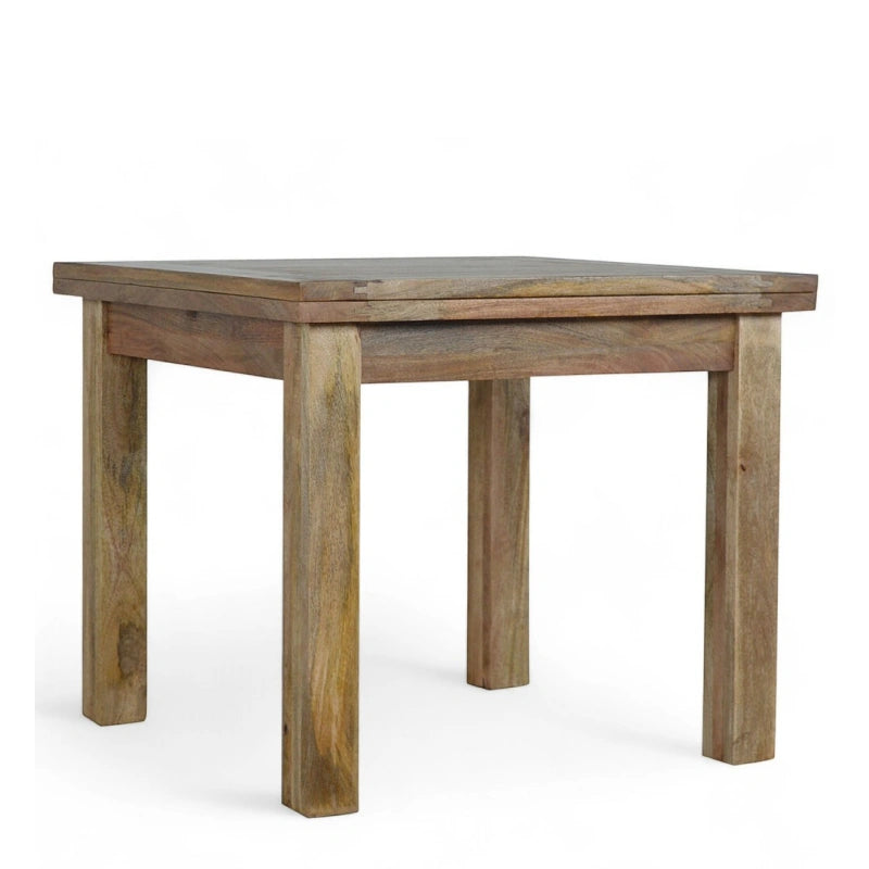 Designed for versatility and charm, this extendable butterfly dining table is perfect for both everyday meals and special gatherings. Handcrafted from solid mango wood, it features a square top that easily expands with a butterfly extension, making it ideal for hosting family and friends. The natural finish highlights the unique character of the wood grain, ensuring every piece is one of a kind.