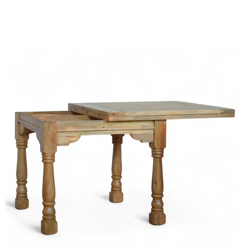 Timeless and practical, the Granary Royale Butterfly Extension Dining Table combines classic craftsmanship with modern convenience. Handcrafted from solid mango wood, it features beautifully turned legs and a natural finish that highlights the wood’s rich grain. The butterfly extension mechanism allows the table to expand effortlessly, making it ideal for family gatherings and dinner parties.
