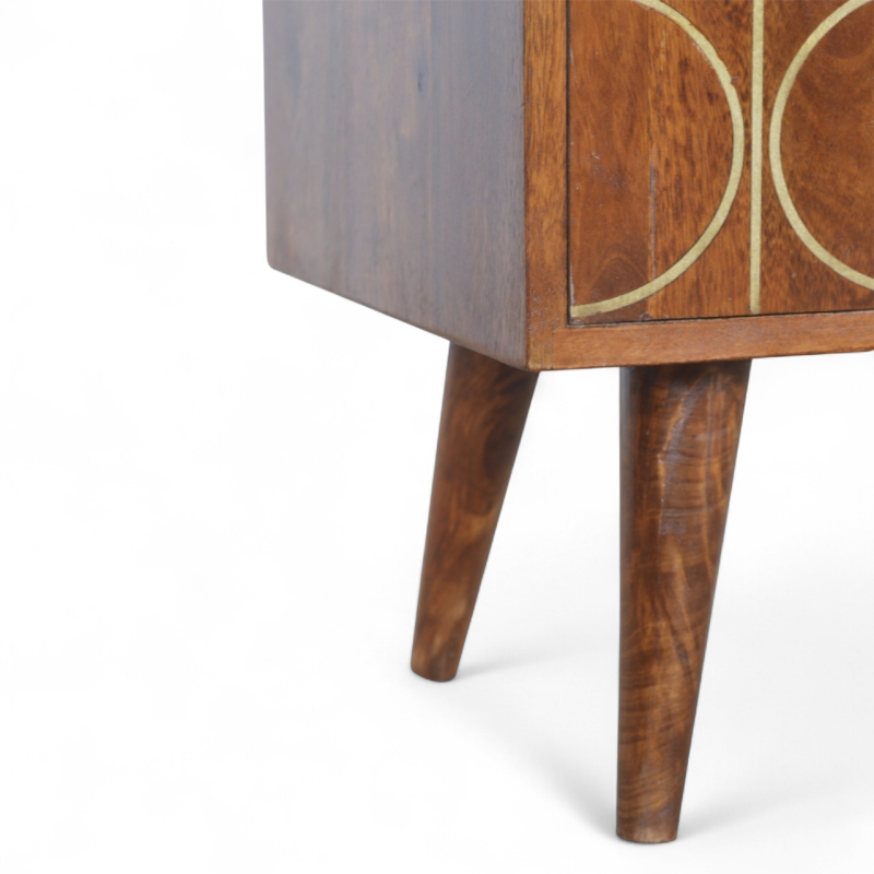 Mid-Century Modern Chestnut Solid Wood Gold Inlay TV Stand