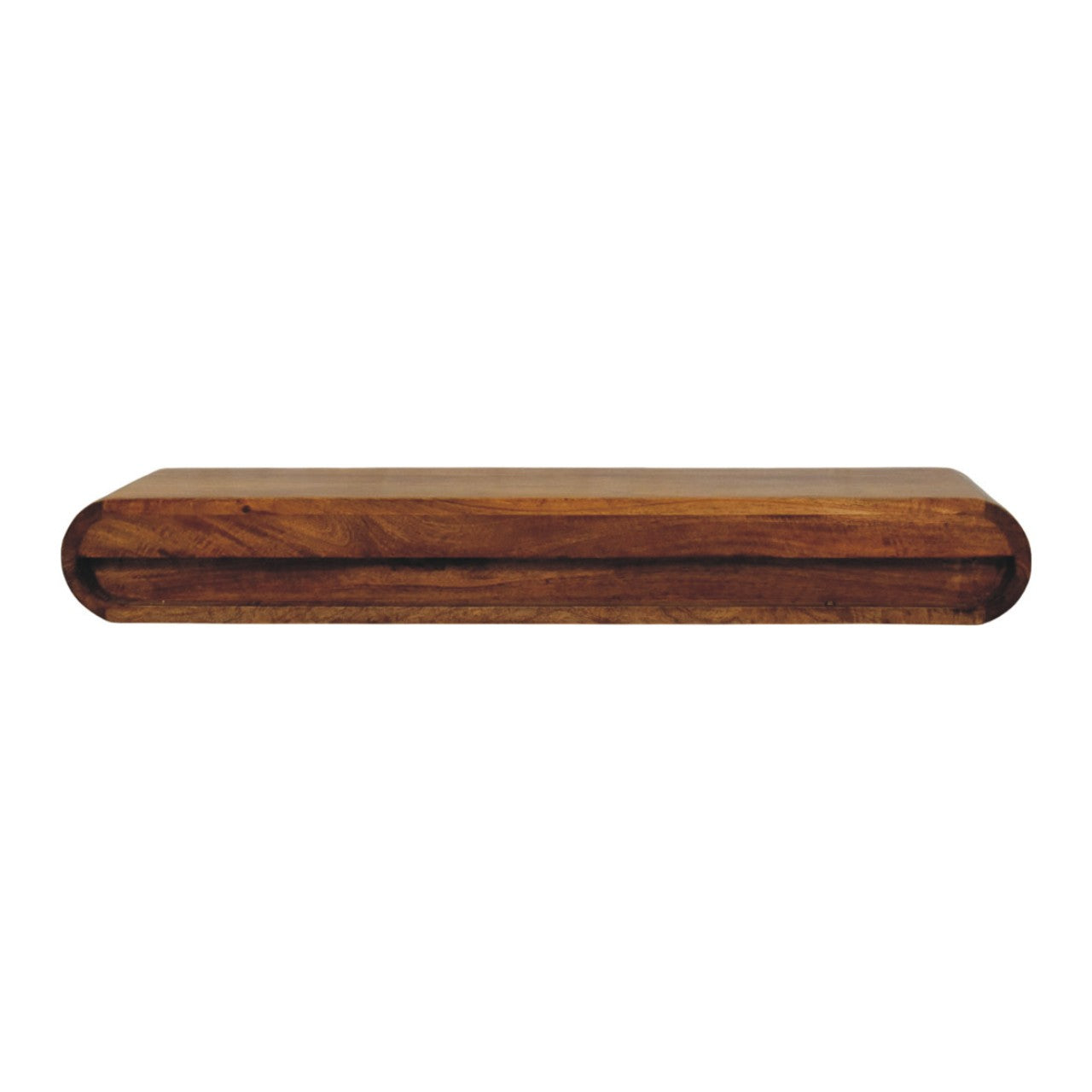 The Solis Wall-Mounted Media Unit is the epitome of contemporary craftsmanship and minimalist design. Handcrafted from 100% solid mango wood in a warm Amber Oak finish, this sleek piece features a beautifully rounded silhouette with three seamlessly integrated drawers for concealed storage. Its floating form enhances the sense of space while maintaining a clean, sophisticated look — ideal for modern living rooms or entertainment areas. Perfectly blending functionality and artistry, the Solis Media Unit elevates your interior with its smooth lines and natural wooden elegance. Height: 12 cm, Width: 90 cm, Depth: 32 cm Carton Height: 22 cm, Carton Width: 100 cm, Carton Depth: 42 cm